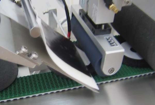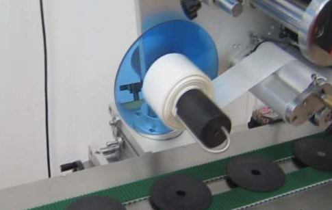 上圖這張圖片是已經(jīng)被送到貼標頭的位置了.而且正在貼不干膠.下面來張更具體一點的